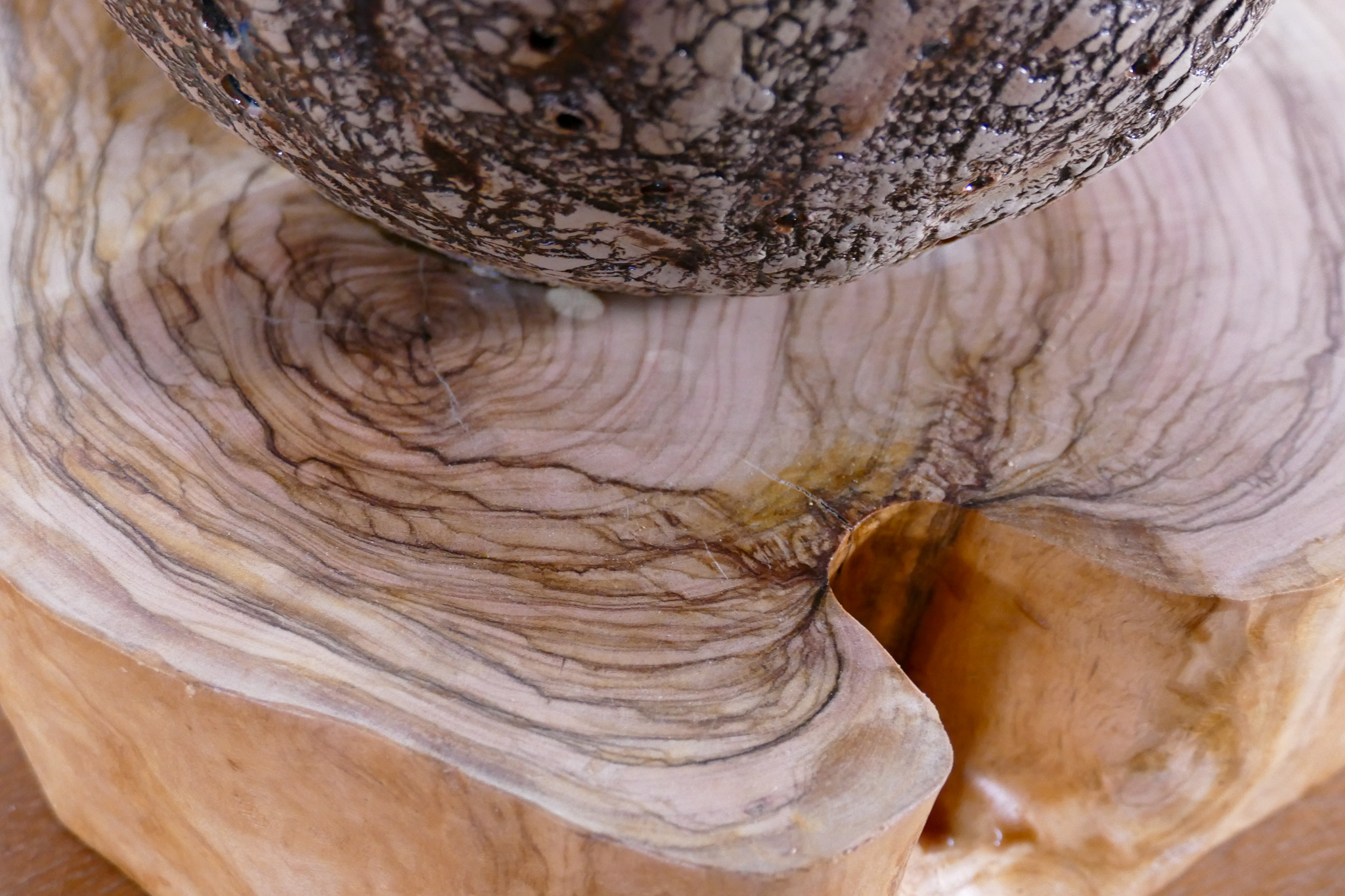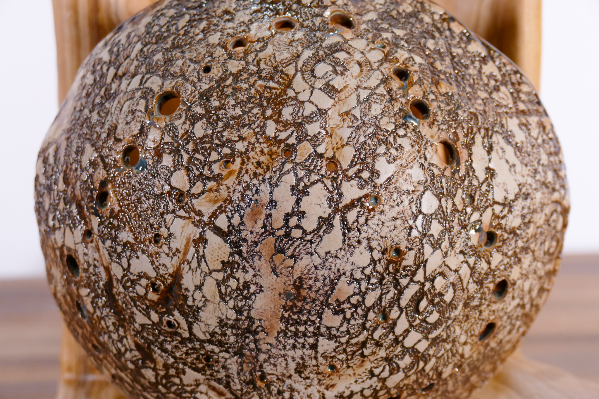 Matériaux : Olivier et céramique dentelée blanche et brune